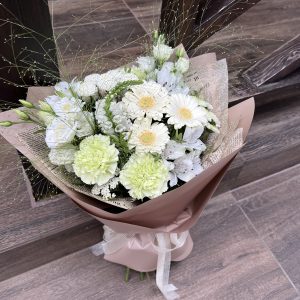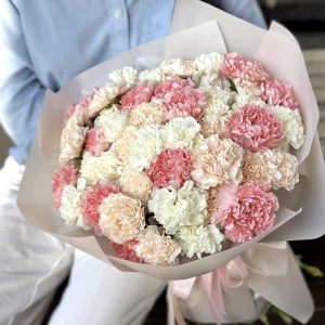 Букет дополнен фирменной переноской и аквабоксом.